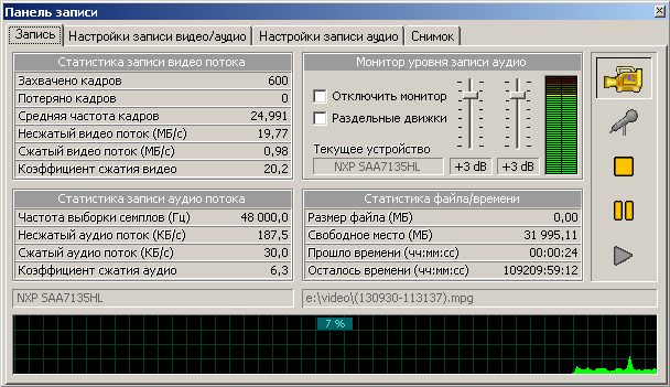 hd44780 писал(а): Короче - поставил я Ваши кодеки, запустил запись. Сразу началось нечто странное - в графе "Статистика файла/времени" размер файла нулём был, нулём остался, а "осталось времени" - какое-то жуткое число типа 50 тысяч часов  .... и всё время увеличивается. Скрин положил. На моих кодеках и аппаратном кодере "осталось времени" - 7 с копейками часов. Спустя примерно полторы минуты индикатор уровня замирает, попытка остановить запись либо закрыть программу приводит к глухому вису ПО. Убить его можно только из диспетчера задач. Так что до проверки пропорций у меня дело не дошло. Вернул свои кодеки на место, мне так лучше .. boss911, что-то Вы там намутили.. Действительно странно!? Почему у меня работает? Т.е. работает избирательно что-ли?  Admin писал(а): boss911, С кодеками разбираемся, однако, т.к. официальной документации на эти версии у нас нет, гарантировать их нормальную поддержку пока не можем.