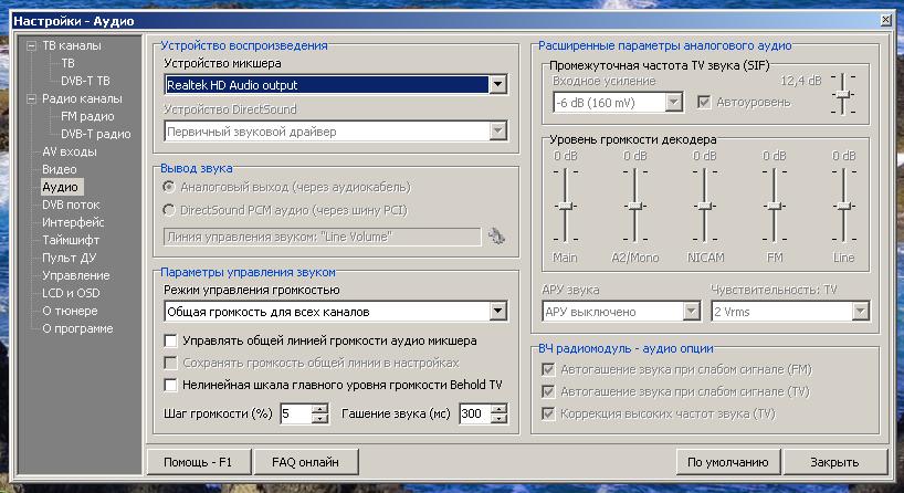 hd44780 писал(а): Обычно по PCI всегда работает, даже на тупых звуковых семёрочных дровах. Попробуй скачать дрова на звук с сайта Реалтека, если не поможет, проверь тюнер в другом компе. Говорю же, дрова самые свежие, и под 7 и под XP. hd44780 писал(а): У меня есть старый Aver 507, так у него звук по PCI пропал, когда в компе БП сдох. БП купил, поменял, а звука нема. Работает только через звуковуху.